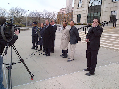 Not Belle, but Sen. Schumer held a press conference on the courthouse steps yesterday.  Here's an article about it.